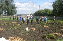 Продолжаются работы на пришкольном участке. Сегодня учителя и учащиеся 5-11 классов убрали картофель.
