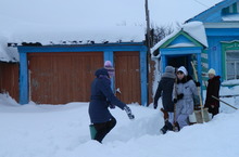 Учащиеся 7 класса помогли в уборке снега Козловой Ольге Владимировне.