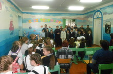 Праздничный концерт провели учащиеся школы для своих дедушек и пап. Ведущие веселили зрителей своими шутками и частушками. Задушевные песни, стихи звучали в адрес мужчин и мальчиков. С поздравительной речью выступила директор школы Никушина О.Д.