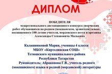 Государственное бюджетное учреждение дополнительного профессионального образования Республики Мордовия «Центр непрерывного повышения профессионального мастерства педагогических работников - «Педагог 13.ру» в Год педагога и наставника провел Межрегиональный дистанционный конкурс творческих работ обучающихся на (мокшанском, эрзянском) языке, посвященный 100-летию мордовского поэта и прозаика Александра Степановича Малькина. В данном конкурсе приняли участие учащиеся МБОУ "Киртелинская СОШ" и по итогам стали победителями и призерами. Поздравляем!!! Желаем дальнейших творческих успехов.