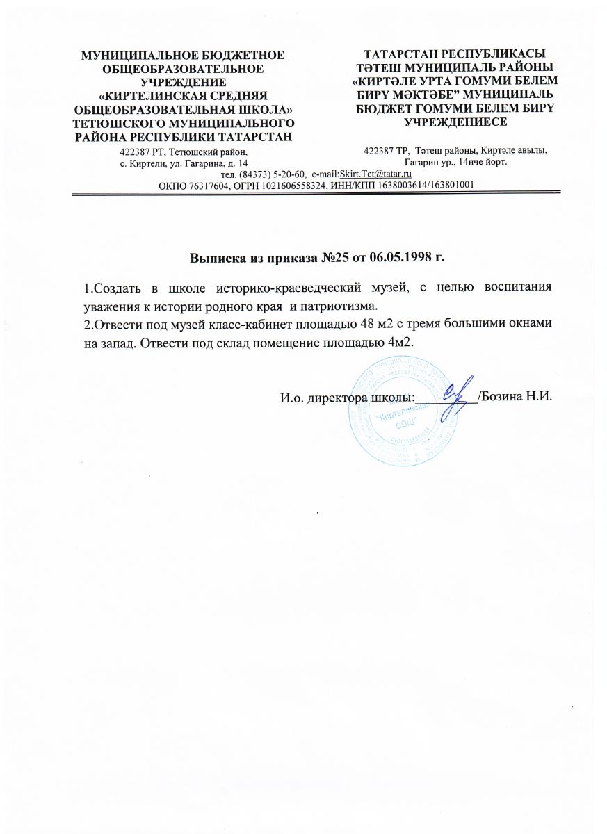 Муниципальное бюджетное общеобразовательное учреждение «Киртелинская средняя общеобразовательная школа» Тетюшского муниципального района Республики Татарстан / Татарстан Республикасы Тәтеш муниципаль районы "Киртәле урта гомуми белем бирү мәктәбе" муниципаль бюджет гомуми белем бирү учреждениесе