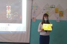 Обучающиеся просмотрели мультфильмы по ПДД.Лилия Ильдаровна подарила светоотражающиеся элементы и игры для дошкольников.
