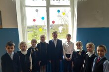 Учащиеся 2 класса поздравили с праздником Победы 9 мая - Хураскина Владимира Александровича, пожелали ему крепкого здоровья и мирного неба над головой.