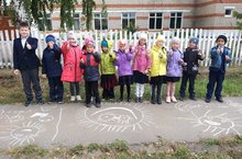 С учащимися школы в рамках акции "Добрая неделя" провели мероприятие "Яркое село".Дети рисовали на асфальте добрые рисунки - солнце, цветы, радугу, мир.