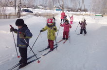 В рамках месячника оборонно-массовой работы дошкольники вместе с воспитателем Числовой А.П. и мл. воспитателем Тугановой Н. А. встали на лыжню.