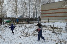 28 октяюря 2018 года с учащимися и работниками школы провели субботник возле учреждения.