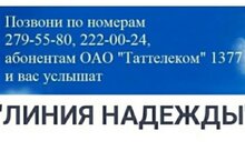 Телефон доверия службы «Линия надежды» 8(843) 222-00-24