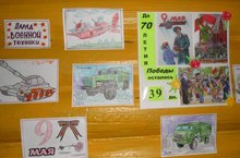 В рамках подготовки к празднованию 70-летия Победы, с дошкольниками просмотрена презентация "Парад военной техники" и оформлена выставка рисунков.