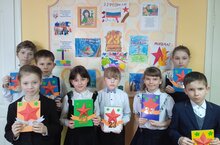 К празднику учащиеся приготовили поздравительные открытки для соих пап, братьев.