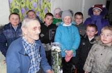 9 декабря в День героев Отечества, в рамках декады инвалидов, учащиеся МБОУ «Монастырская НОШ – детсад» очередной раз посетили ветерана войны нашего села Борисова Александра Васильевича. Поздравили его с этой знаменательной датой и наступающим Новым годом.