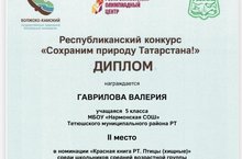 По итогам Республиканского конкурса "Сохраним природу Татарстана!" ученицы 5 класса Байкиева Диана и Гаврилова Валерия стали призерами (руководитель Игнатьева А.С.)