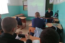 Представители ГКУ "Тетюшское лесничество" Абдрахманов Р.Т. и Амерханов М.И. провели профориентационную беседу с учащимися 8-10 классов. Дети посмотрели фильм об истории создания лесничества и узнали, какой вклад оно внесло в Победу в Великой Отечественной войне.