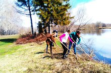Вооружившись необходимым инвентарем, ребята и учителя с удовольствием приводили в порядок школьную территорию: собирали мусор,убирали прошлогоднюю листву и траву. -