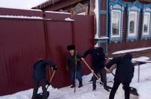Сегодня учащиеся нашей школы оказали помощь по уборке снега ветерану труда ЗотовуА.Н.
