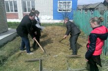 В рамках месячника по благоустройству и празднования 72-ой годовщины ВОв отряд наследников 5 класса под руководством директора школы Торгайкина Н.В. очистили территорию памятника от сухой травы.