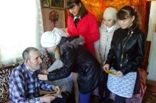 Сегодня ученики начальных, 5,8 классов вместе с преподавателями Гиматдиновой Т.Г., Игнатьевой А.С., Бердниковой Н.В. вручали детям войны, труженикам тыла и вдовам участников Великой Отечественной войны приглашения на митинг, посвящённый 70-летию Великой Победы, и Георгиевские ленточки.