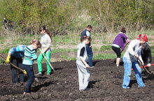 Сегодня коллективом нашей школы был проведён субботник на пришкольном участке. На грядках посеяли лук, свёклу, морковь.