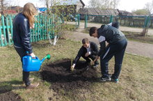 4 мая учащиеся 7 класса с учителем ОБЖ Волковым Е.П. посадили аллею Памяти в школьном дворе.