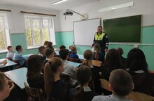 Инспектор обсудил с ребятами правила езды на велосипеде и напомнил об ответственности за вождение мопедов, мотоциклов несовершеннолетними. В конце встречи инспектор ГИБДД пожелал детям быть внимательными и осторожными на дорогах.