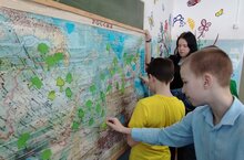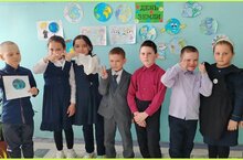 В последний день учебной четверти мы объединили эти два события и провели акцию "Береги ресурсы нашей Земли ". Дети пришли в одежде синего, зелёного и жёлтого цвета, символизируя жизнь на земле, её защиту. Учащиеся нанесли на карту деревья, озера и реки, обозначая этим важность сохранения и бережного отношения к природе. -