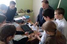 На базе центра "Точка роста" естественно-научной направленности проходят внеурочные занятия. Учащиеся под руководством учителя физики Иванова Н. Д. проводят опыты.