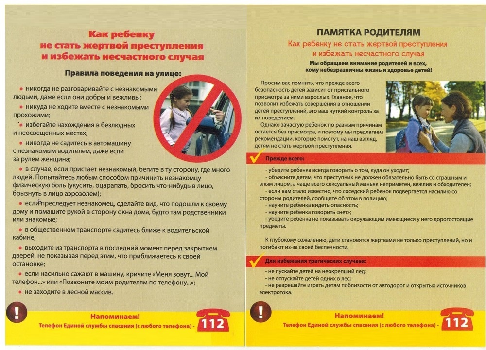 Памятка для родителей по предупреждению противоправных действий в отношении детей