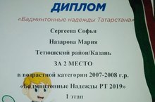 «Бадминтонные надежды Татарстана» 25.03.2019