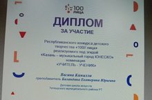 2 ноября были подведены итоги Республиканского конкурса детского творчества «100// лица» номинация «УЧИТЕЛЬ - УЧЕНИК», реализуемый под эгидой «Казань – музыкальный город ЮНЕСКО». В конкурсе приняли участие преподаватели и обучающиеся фортепианных отделений, отделений струнных инструментов, духовых и ударных инструментов, народных инструментов детских музыкальных школ и школ искусств управлений культуры и образования города Казани и Республики Татарстан, играющие в совместном ансамбле - учитель с учеником (учениками). Жюри конкурса представляли ведущие преподаватели Казанской государственной консерватории и Казанского музыкального колледжа. По итогам конкурса Дипломами участников отмечены учащиеся Детской школы искусств музыкального отделения: Вагина Камилла (4кл.), Старостина Элина (4кл.), Кулумбегова Ирина (4кл.), Белов Макар (6кл.). Поздравляем!