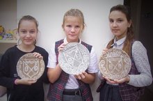 В рамках празднования 100 -летия образования ТАССР в Детской школе искусств на художественном отделении по классу керамики ряд занятий был посвящен созданию эскиза на тему: «Герб родного города». Данная тема воплотилась в изготовлении нескольких вариантов сувенирных тарелок. Заранее подготовленные пласты вогнутой формы были расписаны методом «пастилаж» - жидкая глина выдавливается через трубочку по рисунку. Задача: скомпоновать изображение самого герба в круге. Было решено обрамить изображение рисунком, информирующим о том, что наш город стоит на берегу реки Волги. Создание подобных образцов требует творческого подхода, дети ближе знакомятся с геральдикой и историей происхождения герба нашего города.