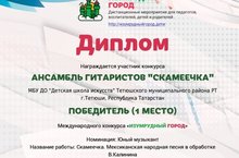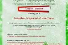В дни новогодних каникул, 4 января 2019 года учащиеся детской школы искусств: вокальный ансамбль «Золотой Ключ» (Руководитель Голова В.Ю.) и ансамбль гитаристов «Скамеечка» (Руководитель Голов Д.В.) приняли участие в дистанционном Международном конкурсе «Изумрудный город».