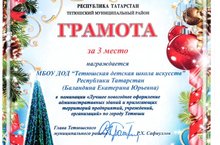 Коллектив Детской школы искусств принял активное участие в районном конкурсе на лучшее новогоднее оформление фигур «Сказочные герои – 2018», который проходил с 15.12.18 – 25.12.18 на территории Тетюшского муниципального района. Конкурс был направлен на реализацию творческого потенциала участников, а также создание праздничного новогоднего настроения у жителей города.