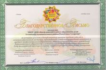 Коллектив Центра дополнительного образования детей награжден Благодарственным письмом за активное участие в Республиканской ярмарке-продаже изделий и сельскохозяйственной продукции, произведенной учащимися учреждений...