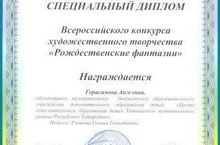Специальными дипломами «Всероссийского конкурса художественного творчества «Рождественские фантазии» награждены обучающиеся объединения «Мир игрушек» ЦДОд Герасимова Ангелина и Данилова Юлия, руководитель Глотова Галина Геннадьевна.