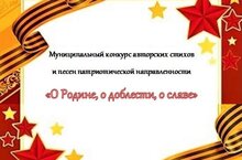 В Центре дополнительного образования, прошёл муниципальный конкурс авторских стихов и песен патриотической направленности «О Родине, о доблести, о славе», посвящённый Победе в Великой Отечественной войне 1941-1945 годов. Целями и задачами Конкурса являются выявление и поддержка одарённых детей, духовно-нравственное, гражданско-патриотическое и художественное воспитание, формирование у детей и подростков патриотических чувств к своей Родине, сохранение и развитие чувства гордости за свою страну.