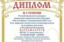 Активисты штаба «С Нами Тысячи» Центра дополнительного образования приняли участие в Республиканском конкурсе творческих проектов, юных блогеров «Милли ВОЯЖ», посвященный 2022 году- Году народного искусства и нематериального культурного наследия в Российской Федерации. Конкурс проходил с 20 октября 2021 г. Его целью являлось - формирование вести авторский блогерский контент в области медиа искусства и творчества, посредством сбора и изучения краеведческой и этнографической информации в районах Республики Татарстан. Активисты около полугода выкладывали в сеть народные традиции, обычаи, фольклор и заняли почетное 2 место.