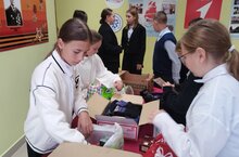 Учащиеся 9а класса (кл.рук.Л.Г.Шарафиева) в рамках осенней недели добра приняли участие в акции "Коробка добра" и собрали гуманитарную помощь участникам СВО.