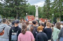 Живая память о войне… Она не стирается, не тускнеет с годами. Но разве память бывает живой? Человек может умереть дважды. Там, на поле боя, когда его догонит пуля. А второй раз — в памяти народной. Второй раз умирать страшнее. Второй раз человек должен жить! Ведь все, что могли, они сделали. Обо всем этом должна знать и помнить современная молодежь, чтобы память о Героях Великой Отечественной войны не увядала. Именно с этой целью 22 июня участники пришкольного лагеря "Панама" МБОУ "Тетюшская СОШ №1 им.Ханжина П.С." начали линейку с Аллеи Памяти, где почтили память Героев Советского Союза и полных кавалеров ордена Славы Тетюшского муниципального района и всех павших в годы ВОв. Присоединились дети и ко Всероссийской акции "Свеча памяти", приняли участие в митинге-реквиеме «Память, как вечного времени зов…», посмотрели в КРЦ военный фильм.