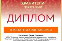 Учитель русского языка и литературы Шарафиева Лилия Гумеровна стала призёром очного регионального этапа Всероссийской олимпиады учителей русского языка "Хранители русского языка".