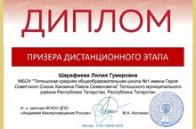 Шарафиева Л.Г. приняла участие во Всероссийской дистанционной олимпиаде учителей по русскому языку, проведённой Академией Минпросвещения России. По итогам олимпиады учитель заняла призовое место.
