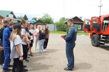 Одиннадцатый день в лагере отдыха «Панама» при МБОУ «Тетюшская СОШ №1 им. Ханжина П.С.», был посвящен основам безопасности жизнедеятельности. Воспитанники лагеря побывали на экскурсии в ФГКУ «133 Пожарная Часть ФПС по Республике Татарстан». Пожарный Семенов А.В. познакомил ребят с пожарным техническим вооружением, показал, как осуществляется подача воды при тушении пожара. Воспитанникам была предоставлена возможность одеть боевую одежду пожарного с использованием СИЗД. После обеда ребята посмотрели видеофильм «Общие правила оказание первой медицинской помощи» и сами попробовали накладывать бинтовые повязки друг другу.