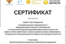 Муниципальное бюджетное общеобразовательное учреждение «Тетюшская средняя общеобразовательная школа №1 имени Героя Советского Союза Ханжина Павла Семеновича» Тетюшского муниципального района Республики Татарстан - «Школа-центр компетенции в электронном образовании»/Татарстан Республикасы Тәтеш муниципаль районы «Советлар Союзы Герое Ханжин Павел Семенович исемендәге Тәтеш 1нче урта гомуми белем бирү мәктәбе» муниципаль бюджет гомуми белем бирү учреждениесе - новости