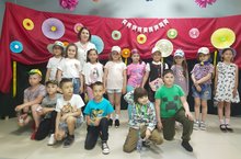 Ученики 1В класса в первый день летних каникул побывали в КРЦ "Новый век" . Ребята просмотрели мультипликационный фильм "Трое в перьях".