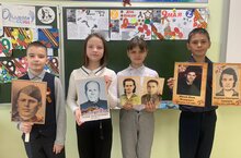 Учащиеся 4А класса на классный час принесли портреты родственников-фронтовиков. Дети с гордостью рассказывали о подвигах своих прадедов. Они узнали, что независимость нашей Родины и нашего счастья достались потом, кровью и жизнью нашего народа. Классный час прошел интересно, ребята слушали, затаив дыхание.