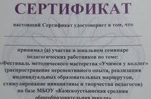 Сегодня учителя нашей школы приняли участие в зональнои семинаре педагогических работников по теме: "Фестиваль педагогического мастерства "Учимся у коллег"( распостранение перспективного опыта, реализация индивидуальных образовательных маршрутов, стимулирование инициативы и творчества педагогов) на базе МБОУ "Камскоустьинская средняя общеобразовательная школа" и поделились опытом.