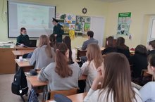 Гости экологического мероприятия сотрудники ГПКЗ «Долгая Поляна» Похлёбкин Е.Н и Сорокина Л.М. провели Экологические уроки для учащихся 9б и 1а классов. Ребята узнали о роли природного заказника на территории Тетюшского района. Ученики 1а класса участвовали в экологической игре.