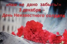 День неизвестного солдата – это сравнительно новая памятная дата в российской истории, отмечается ежегодно – 3 декабря. В честь этого мероприятия в 11 А классе был проведён классный час «Нам не дано забыть». Цель классного часа: воспитание патриотизма, любви к своей Родине, Отчизне, чувства гордости за свою страну, знакомство учащихся с историко-литературным наследием нашей страны; воспитание уважение к героическому прошлому нашего народа, к подвигу защитников.