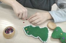 На занятии кружка "Умелые руки" обучающиеся 3 класса работают с фетром, они шьют новогодние игрушки.
