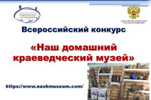 С 15 мая-25 сентября 2020 проходит конкурс «Наш домашний краеведческий музей». Цель Конкурса – cовершенствование системы патриотического воспитания молодежи через организацию всероссийских семейных конкурсов, направленных на изучение истории семьи и родного края. Участниками данного конкурса являются Максимов Н. (6 класс) и Ванюхина Д. (9 класс). На данный момент проводится голосование и подведение итогов. Участники предоставили видео-ролики, где рассказано о домашнем музее и его экспонатах. Наши участники принимают участие в номинации «Новорожденный» домашний музей. (Руководитель Чернова Е.В.)
