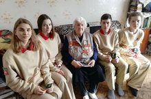 В преддверии 75-летия Победы в Великой Отечественной войне юнармейцы из 8А класса посетили участницу войны – Страшину Валентину Прокофьевну. Служила Валентина Прокофьевна в госпитале фельдшером. В память о встрече, ее сын подарил юнармейцам значки и удостоверение ЮДПД (Юношеская Добровольная Пожарная Служба). Такой подарок стал очень символичным для учащихся, так как класс состоит в ДЮП. (кл. рук. Самойлова, учитель Ванюхин А.В.)