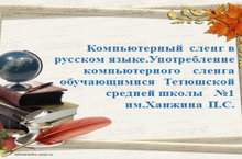 В современном нам русском языке существует целый пласт достаточно самобытной и интересной лексики, которая используется огромным количеством людей, - это компьютерный сленг. Множество слов, которые составляют лексический состав этого пласта речи, заимствуются из "компьютерного" языка - английского.С чем это связано? В первую очередь, с тем, что все больше людей используют компьютер в своей профессиональной деятельности, в учебе, в быту и для развлечения. Во-вторых, знание компьютерного жаргона сплачивает людей, занятых в этой сфере, облегчает реальное и виртуальное общение пользователей Интернет, позволяет в сжатой форме обмениваться информацией, экономя тем самым время и деньги. Этим определяется актуальность проведения познавательных мероприятий на уроках русского языка . «Компьютерный сленг – новый пласт лексики в русском языке» - об этом говорили обучающиеся 7Б класса (учитель Титова Н.А.) -